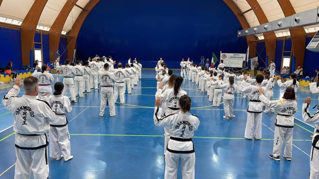 E’ stata una sessione di lavoro davvero di alto profilo, a dirigerla due grandi personaggi del calibro del Gran Master Tarcisio Martella e il suo vice Maestro Claudio Fiorentino, rappresentanti della ITF Union Italia. L’ineccepibile organizzazione di tale manifestazione è stata curata nei minimi particolari dai padroni di casa, l’associazione sportiva dilettantistica Team Mulè. Oltre i propri numerosi atleti, notevole è stata l’affluenza di palestre, anche da altre federazioni, che consapevoli dell’importanza a presenziare a queste lezioni, per evolversi e ricercare con lo studio la giusta tecnica, con la loro presenza hanno contribuito ad arricchire queste giornate, per citarne alcune: Magnus Lupus, Spirit Indomit, asd Lee, Action Tkd, Dragon Spirit e una delegazione direttamente dalla Svizzera. Le giornate sono state suddivise con una parte teorica dedicata interamente alla formazione delle cinture nere, con relativa pratica, ai passaggi di cintura nera (dan) che colorate (kup); infine ma non per importanza c’è stato il “Giuramento dell’Atleta del Taekwon-do”, dove tutti i presenti hanno giurato sul proprio onore di rispettare i principi e le regole di questa disciplina coreana e non farne mai cattivo uso.