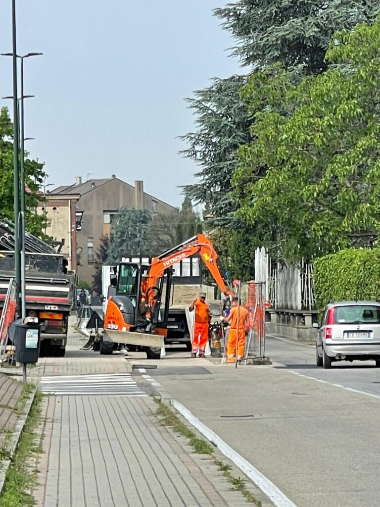 Anche in via Roma, in prossimità della stazione, lavori stradali che impongono il semaforo provvisorio e senso unico alternato (foto servizio di Luciano Berruto)