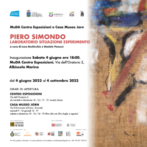 La mostra di Piero Sismondo Laboratorio Situazione Esperimento, dopo Alba e Torino, inaugurerà il prossimo sabato 4 giugno presso il MuDA, Centro Esposizioni e Casa Museo Jorn, ad Albissola Marina. La mostra è stata realizzata in collaborazione con il Comune di Albissola, con il contributo della Fondazione De Mari