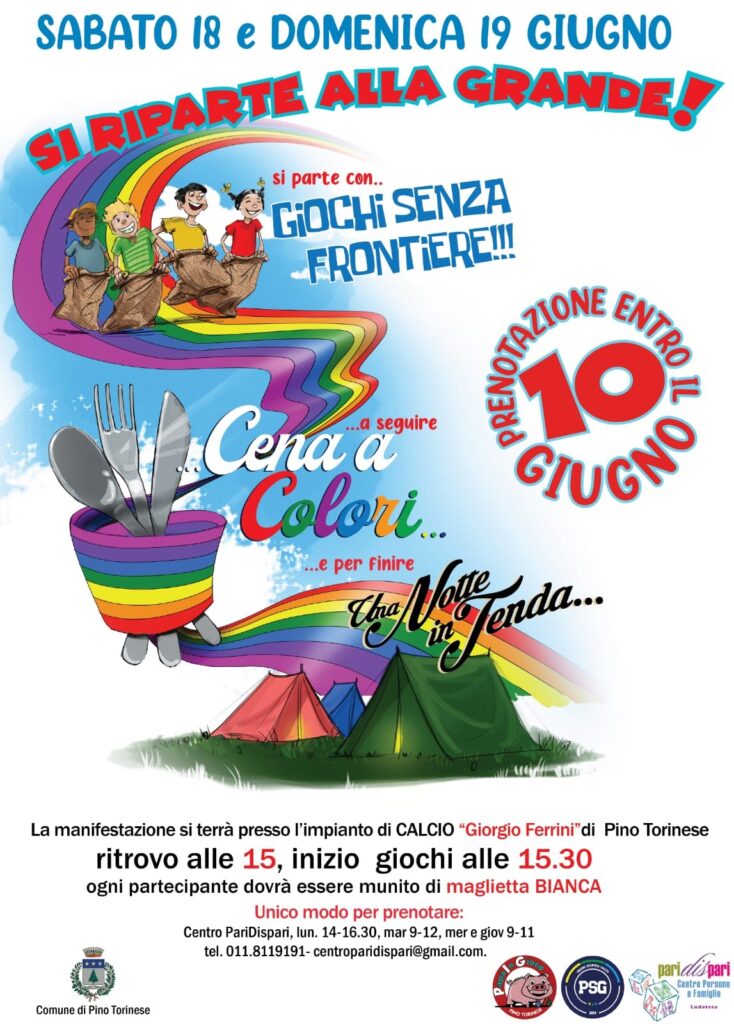 Una bellissima iniziativa promossa dall’associazione “Papà in Gioco” in collaborazione con il Centro PariDispari, il PSG Pino Calcio e il Comune di Pino Torinese.Nella locandina trovi tutte le informazioni utili per potervi partecipare o anche solo assistervi oppure clicca su questo link https://giochi2022.mailerpage.com/