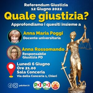 Chieri. “Quale giustizia?” Il circolo del Pd di Chieri-Riva-Baldissero approfondisce i 5 quesiti referendari