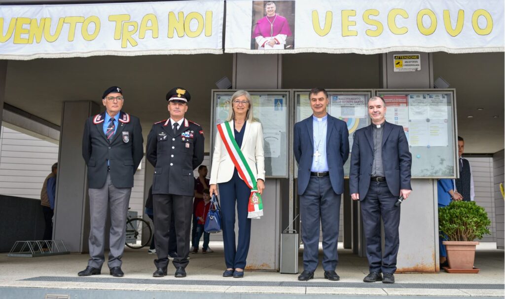 Molti fedeli, giovani e un grande clima di festa hanno accolto domenica 29 maggio il nuovo Arcivescovo Metropolita di Torino S. E. Mons. Roberto Repole a Salsasio nella sua prima visita nella Città di Carmagnola in occasione della celebrazione delle Cresime nella Parrocchia di Salsasio.All’arrivo dell’Arcivescovo Roberto ad accoglierlo, oltre ai ragazzi/e che hanno poi ricevuto il Sacramento della Confermazione (Cresime), c’era un grande striscione sulla chiesa nuova con scritto “Benvenuto tra noi, Vescovo, Fratello e Amico” con una foto del nuovo Arcivescovo.A fare gli onori di casa è stato il Parroco di Salsasio don Iosif Patrascan che lo ha accolto e accompagnato in una piccola visita alla sede della comunità parrocchiale di S. Maria di Salsasio. Prima della S. Messa si è tenuto il saluto delle autorità con il saluto del Sindaco di Carmagnola Ivana Gaveglio, alla presenza del Comandante dei Carabinieri di Carmagnola Maresciallo Piero Massimo Fracella, del gonfalone della Città di Carmagnola, del gonfalone di borgo Salsasio e dei rappresentati del Consiglio Pastorale Parrocchiale di Salsasio. Presenti inoltre il superiore dei Fratelli Maristi di Salsasio fratel Franco Faggin e suor Angela Riccardi delle suore di Sant’Anna che collaborano con la Parrocchia.Il Sindaco di Carmagnola oltre al saluto a nome della Città, ha donato a Mons. Repole il libro “Carmagnola: una città da favola” preparato dagli studenti degli istituti comprensivi cittadini.Ha poi preso la parola il Segretario del Consiglio Pastorale Parrocchiale di Salsasio e Portavoce delle Parrocchie di Salsasio, Casanova e Vallongo Ivan Quattrocchio che portando anche il saluto delle comunità di Casanova, Vallongo, Tuninetti e Tetti Grandi, ha poi donato all’Arcivescovo a nome della Parrocchia di Salsasio un quadro raffigurante la Madonna della Mercede, Patrona del borgo e della Parrocchia, augurando buon ministero a Mons. Repole attraverso le parole della Beata Enrichetta Dominici, nativa di Salsasio e a cui è dedicata la nuova chiesa parrocchiale: “In ogni momento difficile del suo ministero, in ogni momento in cui dovrà prendere delle decisioni importanti o delicate per la nostra Diocesi, si ricordi Arcivescovo che non sarà mai solo perché avrà noi suoi fedeli al suo fianco, perché avrà al suo fianco i suoi Parroci e perché ha Dio, che come diceva Madre Enrichetta ‘E’ Babbo buono, sa tutto, può tutto e ci ama!'” ha concluso il Portavoce della Parrocchia.Mons. Repole ha poi preso la parola ringraziando per l’accoglienza e dicendo di sentirsi come a casa.A seguito del saluto ufficiale, animato dalla musica della Banda Filarmonica di Carmagnola, l’Arcivescovo ha salutato i cresimandi ed i loro catechisti e ha presieduto la S. Messa con il rito della Cresima.Ad inizio celebrazione Sua Eccellenza ha voluto ricordare il legame di amicizia con don Iosif che è stato anche suo alunno in facoltà Teologica. Il Parroco Patrascan a sua volta non ha nascosto l’emozione per avere nella nostra Parrocchia l’Arcivescovo in un giorno di così grande e bella festa.Mons. Repole nell’omelia ha sottolineato l’importanza della partecipazione alla Messa domenicale, che non si tratta solo di un ritrovo tra amici o di una festa ma dell’incontro con il Signore.In conclusione della celebrazione solenne l’Arcivescovo Roberto ha ringraziato ancora una volta tutti sottolineando che ha trovato una comunità viva e accogliente.A seguito della Messa nei locali degli uffici parrocchiali il Parroco ortodosso di Carmagnola Padre Mihai Vlasin con una rappresentanza della Chiesa ortodossa rumena di Carmagnola in abiti tradizionali hanno donato una croce all’Arcivescovo Roberto e come di tradizione in Romania anche il pane con il sale con cui si accolgono le autorità come segno di ospitalità.Un giorno di gioia e di festa per tutta la comunità parrocchiale di Salsasio che ha visto tra l’altro una chiesa strapiena di gente e fedeli.
