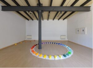 Lo scorso 12 giugno si è conclusa la mostra personale di Claudio Rotta Loria a Il Fondaco. La mostra allestita nei due piani della galleria era composta da una trentina di lavori e da una installazione site specific. Al piano terra ha accolto il visitatore l’opera Promenade chromatique circulaire 13, ottenuta dalla disposizione circolare sul pavimento di carte su cui piccoli parallelepipedi colorati disposti in successione disegnano una circonferenza in dialogo con la linea dell’Equatore e i suoi meridiani. Per la sua particolare disposizione, l’opera induce lo spettatore a percorso intorno ad essa, coinvolgendo la sua percezione in un mutamento continuo del punto di vista, metafora comportamentale del viaggio micro e macro, dallo spazio di galleria al giro del mondo. Al piano superiore, una ragionata selezione di trenta opere tra lavori di grandi dimensioni, sculture, opere a motore e progetti permette di cogliere l’ampiezza e gli sviluppi della ricerca che l’artista conduce dal 1968 intorno alle Superfici a interferenza luminosa. I risultati di questa sperimentazione sulla superficie, intesa come estensione di elementi modulari con orientamento e inclinazione determinati in aggetto sul piano dell’opera, sorprendono per la qualità, l’efficacia e la varietà degli esiti raggiunti in questi lavori, che mantengono sempre una loro costante identità. La mostra è l’occasione per una verifica e un confronto tra i suddetti due gruppi di opere. Costituisce il proseguimento di una riflessione più generale sui diversi cicli fra loro collegati a cui Rotta Loria lavora, e di cui si intende mostrare il fil rouge che li lega: il “pensiero nascosto” alla base del suo metodo di lavoro. “Materiali per un regesto” evidenzia, fin nel titolo dell’esposizione, la finalità di studio e riflessione sull’insieme delle pratiche concettuali e operative che sono alla base del lavoro di questo artista. Anticipato dalla mostra curata da Giorgio Bonomi alla Rocca di Umbertide nel dicembre scorso (dove erano state messe in dialogo le opere appartenenti ai cicli di lavori delle Superfici a interferenza luminosa e delle Spazializzazione di forme elementari) l’esposizione a Il Fondaco prosegue questo lavoro di analisi e rimanda a fine anno la pubblicazione del catalogo.