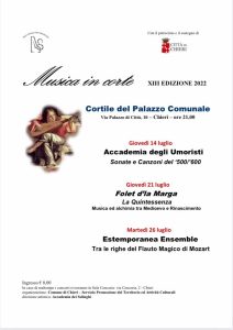 Il classico appuntamento dell’estate chierese si svolgerà quest’anno per la prima volta nel cortile del Palazzo Comunale (via Palazzo di Città 10) dal 1 luglio al 10 settembre.