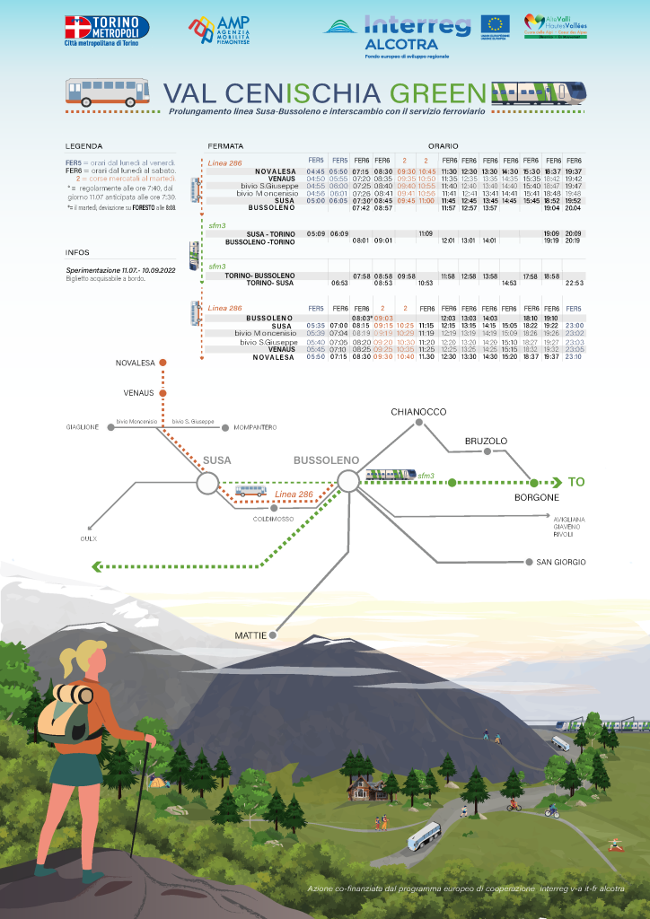 Lunedì 11 luglio prende il via la sperimentazione per rafforzare il trasporto pubblico locale in Val Cenischia. L’iniziativa, messa a punto dalla Città metropolitana di Torino, con la collaborazione dell’Agenzia per la mobilità piemontese è resa possibile dal progetto europeo Cuore dinamico, a cui la Città metropolitana partecipa, nell’ambito del Piano integrato territoriale Alcotra Alte Valli-Cuore delle Alpi, che ha appunto come obiettivo rendere “intelligenti” le comunità montane e rurali dal punto di vista della mobilità sostenibile, della resilienza, della qualità dei servizi pubblici e dell’innovazione.