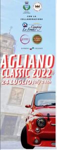 Ore 21: Agliano in bianco cena sotto le stelle in Piazza Castello a cura dell’ Associazione “Bianca Lancia 4.0″con l’accompagnamewnto della cantante jazz Mila Ogliastro. Abbigliamento e accessori dovranno essere di colore bianco: è neutro, tira fuori le persone vere, la loro anima, l’essenza delle persone. Anche accessori per abbellire la tavola non potete limiti alla fantasia, l’importante è che siano in tema con la tradizione italiana e di colore bianco. Domenica 24 luglio alle 8.30: Agliano Classic 2022 – raduno di auto d’epoca con la collaborazione del Circolo Sportivo –Bocciofila Aglianese, Camping Piscina Le Fonti, La Bodeguita del Medio, Cantina Sociale Barbera dei Sei Castelli, Gruppo Alpini Agliano Terme. Pranzo presso International Camping Le Fonti e al termine del pranzo per gli appassionati Giuseppe Simonato presenterà il libro scritto dopo un’esperienza con il musone arancio di Overland. Alle 11.15: Santa Messa in San Giacomo Maggiore, al termine consegna della costituzione ai coscritti del 2004 con la partecipazione della Banda Musicale Comunale “Maria Gianussi” di Agliano Terme.