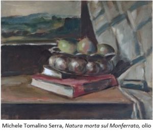 Michele Tomalino Serra – pittore essenzialmente figurativo con slanci al surrealismo – si trovò a vivere e a operare in un ambiente difficile, esclusivo, nella Torino degli anni Sessanta-Ottanta, tendenzialmente orientato alle avanguardie. Allievo di Gigi Morbelli (Orsara Bormida 1900 – 1980), maestro esigente che insisteva sulla struttura e sulla solidità d’impianto, quindi diplomato all’Albertina, non ebbe vita facile sia nel campo dell’arte – fra l’altro proprio a Torino era particolarmente vivace il contrasto fra pittura tradizionale e avanguardie piu spinte – sia nelle vicende personali, per cui rimase sottovalutato, nonostante la sua valentia come pittore. Legato ad un ambiente essenzialmente impressionistico e postimpressionistico, procedeva per sintetiche pennellate; rappresenta un mondo malinconico, “guardato dalla finestra”; l’incomprensione di cui fu vittima si mitigava solo nell’esercizio della pittura, che lo astraeva dal fluire dell’amara esistenza. Ebbe studio in via Mazzini a Torino, nelle soffitte di antichi palazzi, abitate da personaggi particolari, sovente da sconfitti dalla vita per i quali Tomalino Serra sentiva profonda fraternità. Suoi soggetti preferiti sono le “nature silenti” con oggetti della vita comune, in una considerazione piuttosto dimessa. Dalla profonda e amara ironia sono suggeriti dipinti di carattere surrealistico (la donna ridotta a bambola scarmigliata, l’essere umano a manichino … ) che si affiancano ai paesaggi e alle nature morte di grande efficacia. Sperimentò anche antiche tecniche, come la tempera all’uovo. La sua grande perizia tecnica gli consentì anche di eseguire restauri.