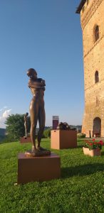 Le fanciulle di Sergio Unia accolgono i visitatori al castello di Grinzane Cavour e lo accompagnano dal cortile all’ingresso. Danzano sui pattini, sono pensierose, addormentate, maliziose, giocano con un aquilone. Sono sculture bellissime e armoniose, sarebbero piaciute senz’altro al Conte Camillo, che dal 1832 al 1849 fu anche sindaco di Grinzane e introdusse notevoli miglioramenti nelle pratiche vitivinicole per la produzioe di vini di alta qualità. In tutto sono dieci sculture in bronzo, con fusione a cera persa, posizionate su parallelepipedi marroni. Seguono il percorso d’ingresso al castello, aggiungendo un tocco di eleganza al contesto, già di per sé molto attrattivo. Le opere dell’artista di Roccaforte Mondovì esposte a Grinzane sono integrate nella mostra d’arte contemporanea diffusa intitolata “Forme e Colori”, un progetto curato da Andrea Vero e Ausilia