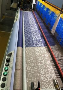 Il disegno che è stato selezionato, il B1282, risale alla seconda metà del Novecento e fa parte del Fondo del famoso studio chierese “Serra & Carli”, ora conservato nell’Archivio storico della Fondazione Chierese per il Tessile e per il Museo del Tessile: un motivo fantasioso in cui elementi floreali e geometrici in azzurro si stagliano su un fondo blu.