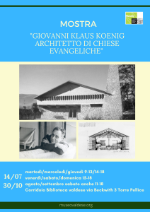 La Mostra, che si trova presso il Corridoio della Biblioteca valdese in via Beckwith 3 di Torre Pellice, propone l’interpretazione architettonica degli spazi di fede con la spiritualità delle comunità in cui le Chiese sono costruite.
