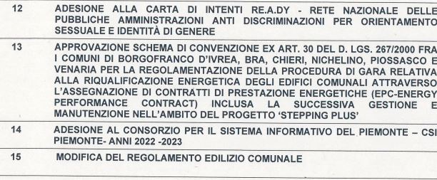 Chieri: mercoledì 27 e giovedì 28 consiglio comunale