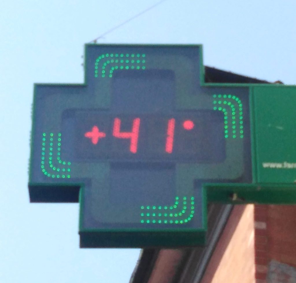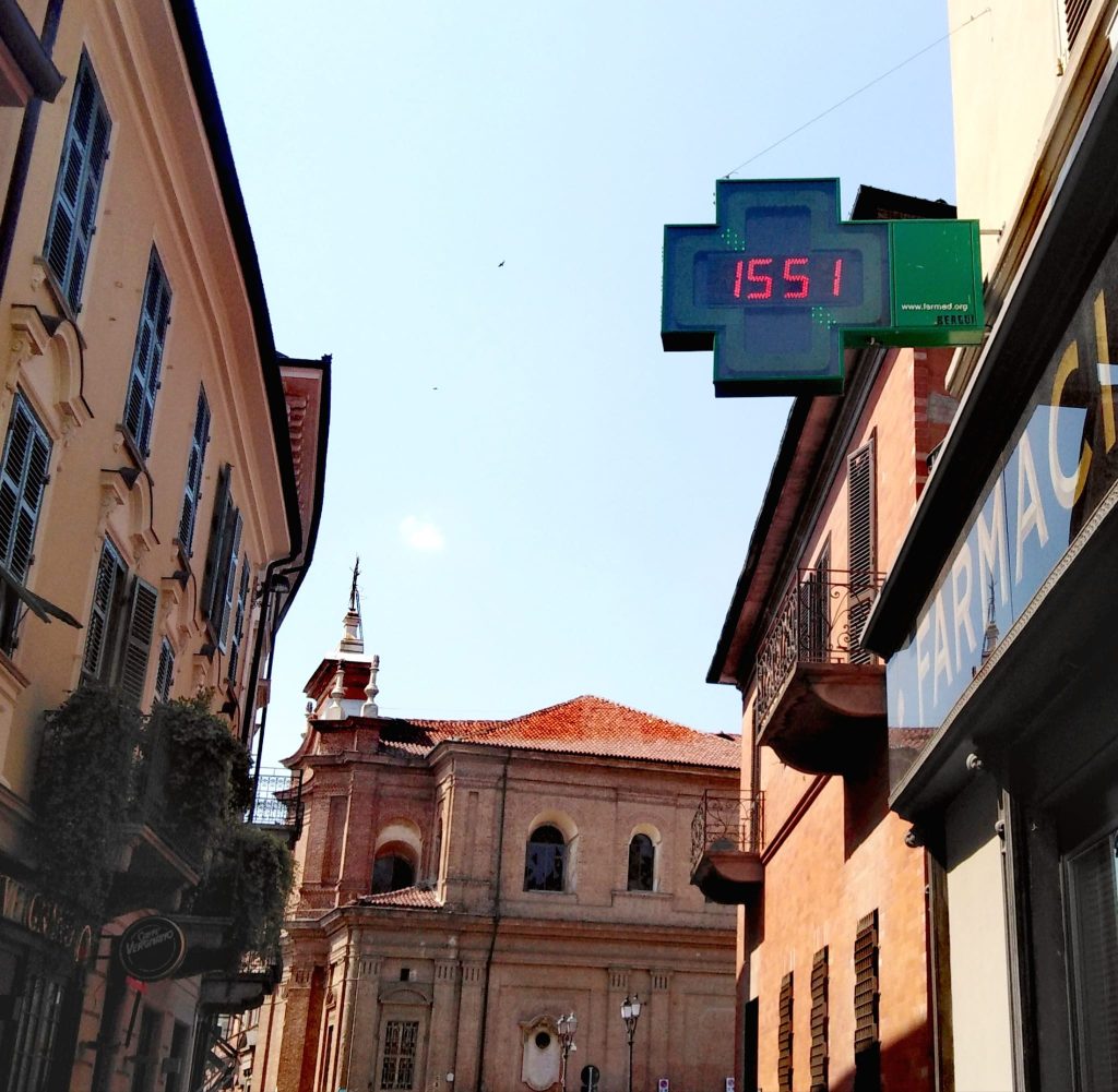 Il caldo che non concede tregua non risparmia naturalmente nemmeno Chieri. Ieri i 35 gradi alle 20, oggi i 41 gradi nello stesso punto in Via Vittorio, alle 15,51. Potrebbe essere un altro (non gradito) record…