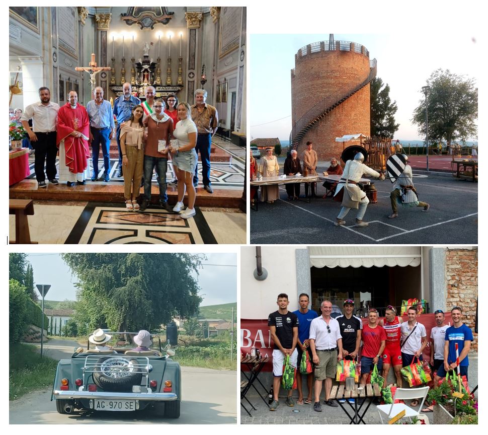 Ad Agliano Terme, dopo 2 anni di stop forzato, più di 70 atleti, (alcuni arrivati dalla Svizzera ), si sono dati battaglia pedalando su e giù per le nostre colline sfidando non solo gli avversari ma anche la calura! Complimenti ai vincitori, agli organizzatori a tutti gli atleti e alla famiglia Paltro della Pasticceria Renzo per tenere viva questa competizione. E grazie a tutto lo staff di supporto: ai volontari, ai militi della Croce Rossa al personale della Protezione Civile Valle Belbo Nizza ed ai cantonieri Paolino e Flavio. InAgliano Classic 2022 più di 50 auto alla terza edizione di Agliano Classic, che pian piano sta crescendo! Un grazie a tutti quanti hanno partecipato e a tutti coloro che hanno reso possibile la splendida giornata! È stata una grande edizione. Vi aspettano tutti per il prossimo anno con ulteriori novità! A cena grigliata con Bianca Lancia:ai piedi della torre del ‘castello’ al cospetto dell’imperatore Federico II di Svevia e di Bianca Lancia i cortigiani hanno degustato una ricca grigliata e assistitoa combattimenti e a torture medioevali.