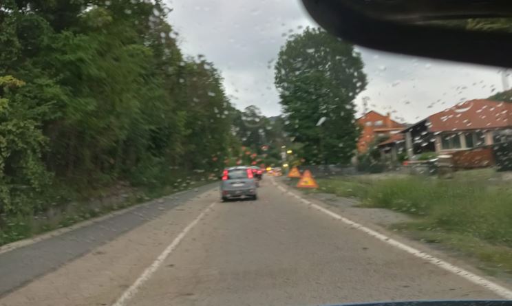 Un cantiere stradale e la pioggia: ecco il mix per creare una mega-coda sulla strada del Traforo del Pino, sia da Chieri che da Torino. Automobilisti impazienti ad aspettare il semaforo verde, in un estenuante senso unico alternato (nella foto, zona la Cloche)
