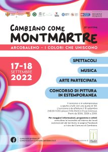 La terza domenica di settembre torna “Cambiano come Montmartre”, la manifestazione cambianese che, con il suo tradizionale concorso di pittura estemporanea a premi e le tante altre iniziative culturali, musicali e di socialità, anima il centro storico e i principali luoghi di aggregazione del paese. La manifestazione, giunta alla XXXV edizione, è stata rinnovata negli ultimi anni, con le edizioni tematiche dedicate a contenuti e a modalità di partecipazione sempre attuali. A partire dal 2018 la manifestazione “Cambiano come Montmartre” ha rappresentato i temi ambientali e sociali, in particolare del riuso e riciclo creativo, della sostenibilità e dell’importanza dalla natura con un’edizione dedicata all’albero. Nel 2020, in periodo di pandemia con una parte dei contenuti online, il tema conteneva un messaggio di speranza: “Insieme verso il futuro”. L’edizione 2022 della manifestazione e del concorso di pittura estemporanea, è dedicata ai tanti significati simbolici dell’arcobaleno.