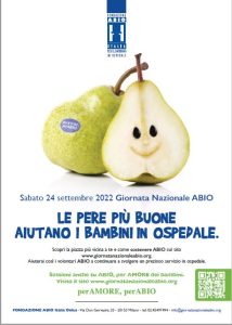 L’Associazione ABIO Torino ODV (Associazione Bambino in Ospedale – Organizzazione Di Volontariato), presente da oltre 20 anni sul territorio torinese organizza la 18a edizione della Giornata Nazionale di sabato 24 Settembre. Potrete incontrare i volontari e le volontarie ABIO a Torino , Chieri e Rivoli nelle piazze sotto indicate per farvi raccontare le loro esperienze. In questi lunghi mesi in cui volontarie e volontari sono stati forzatamente lontani dalle sale gioco, non ci siamo dati per vinti! Oltre a sostenere a distanza i piccoli pazienti nei primi mesi di pandemia, soprattutto attraverso i Social, abbiamo avuto il privilegio di affiancare il personale sanitario in alcuni Hub vaccinali di Torino. Non fa parte della mission ABIO, ma è stato un modo diverso, utile e gratificante per non dimenticarci del nostro ruolo di volontari, mantenerci uniti, attivi e partecipi, per rientrare quest’anno nelle pediatrie. Sarà possibile sostenerci con un’offerta, ricevendo un cestino di ottime pere: il simbolo della Giornata! Il ricavato dell’evento verrà utilizzato per organizzare corsi di formazione per volontari, nuovi o già attivi, in linea con i grandi cambiamenti che gli ospedali hanno vissuto e che il servizio nelle Pediatrie dovrà affrontare nei prossimi mesi. Stiamo tornando a prenderci cura dei bambini e degli adolescenti in ospedale e delle loro famiglie in tutta Italia!