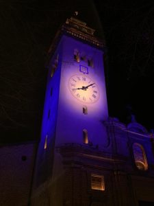 Chieri. Campanile di San Giorgio illuminato di blu. Ecco perchè…
