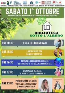 Sabato 1 ottobre a Carmagnola il parco di Cascina Vigna ospiterà una giornata di grande festa per l’inaugurazione della “Biblioteca sotto l’albero” e la festa dei nuovi nati. A partire dalle 10:30 e per tutta la giornata bambini, adulti e famiglie potranno partecipare ad una serie di eventi, ad ingresso libero e gratuito, dedicati alla lettura e al teatro. La “Biblioteca sotto l’albero” è un nuovo spazio dedicato alla promozione della lettura che fisicamente porta il libro al centro della comunità, con l’obiettivo di diffondere il piacere del libro e della lettura tra quante più persone possibile. La nuova casetta-biblioteca diventerà un polo di eventi culturali, all’interno dello splendido scenario del parco di Cascina Vigna, uno dei luoghi più amati dai carmagnolesi. Il progetto è stato realizzato dal Comune, con il finanziamento del Centro per il libro e la lettura della Regione Piemonte, in risposta al bando Città che Legge 2020 del Cepell-Centro per il Libro e la Lettura. Questa iniziativa si pone all’interno di un percorso di promozione culturale che l’Amministrazione porta avanti da alcuni anni nell’ambito del Patto per la Lettura, insieme a 27 soggetti del territorio, tra Enti, associazioni, scuole.