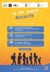 Dal 9 settembre al 27 ottobre 2022 torna a Torino la seconda edizione del Festival dell’Accoglienza “E mi avete accolto”, appuntamento annuale che unisce la Giornata Mondiale del Migrante e del Rifugiato – GMMR (domenica 25 settembre), la Giornata della Memoria e dell’Accoglienza (lunedì 3 ottobre), la Giornata Europea contro la Tratta di Esseri Umani (martedì 18 ottobre) e la Giornata Missionaria Mondiale (domenica 23 ottobre).Un’iniziativa che l’Ufficio per la Pastorale dei Migranti (UPM) dell’Arcidiocesi di Torino ha ideato per rafforzare il suo lavoro di riflessione e sensibilizzazione. Un’occasione per fermarsi a riflettere sui significati profondi del verbo “accogliere”, sulle pratiche formali e informali dell’accoglienza, sugli ostacoli e sulle sfide per costruire territori inclusivi e coesi.Il tema-guida di questa seconda edizione del Festival è il cammino: accogliere, quindi, è anche camminare insieme, camminare “con”, come Papa Francesco ha sottolineato nel suo messaggio per la GMMR 2022, Costruire il futuro con i migranti e i rifugiati.In questa seconda edizione, grazie alla collaborazione con ASCS – Agenzia Scalabriniana per la Cooperazione allo Sviluppo, il presidio di Libera “Rita Atria” e il contributo del Comune di Chieri tre eventi avranno luogo tra Chieri e Pino nel mese di ottobre. Tutte le serate sono a ingresso libero alle ore 21
