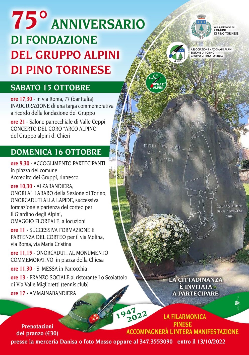 𝗜𝗹 𝗚𝗿𝘂𝗽𝗽𝗼 𝗔𝗹𝗽𝗶𝗻𝗶 𝗱𝗶 𝗣𝗶𝗻𝗼 𝗧𝗼𝗿𝗶𝗻𝗲𝘀𝗲 𝗳𝗲𝘀𝘁𝗲𝗴𝗴𝗶𝗮 𝗶𝗹 𝘀𝘂𝗼 𝟳𝟱° 𝗮𝗻𝗻𝗼 𝗱𝗶 𝗳𝗼𝗻𝗱𝗮𝘇𝗶𝗼𝗻𝗲: 𝘀𝗮𝗯𝗮𝘁𝗼 𝟭𝟱 𝗲 𝗱𝗼𝗺𝗲𝗻𝗶𝗰𝗮 𝟭𝟲 𝗼𝘁𝘁𝗼𝗯𝗿𝗲, due giorni ricchi di appuntamenti, momenti di condivisione e intrattenimento per celebrare questo importante risultato.