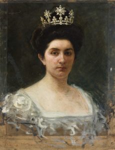 “La regina Margherita mangia il pollo con le dita”. Mai sovrana ha saputo essere tanto empatica e conquistare il cuore del suo popolo quanto la prima Regina dell’Italia unita, Margherita di Savoia. Palazzo Madama le dedica, dal 13 ottobre 2022 al 30 gennaio 2023, una mostra, coordinata da Maria Paola Ruffino, che ne ricostruisce la straordinaria figura. Margherita di Savoia (Torino 1851 – Bordighera 1926) è figlia di Ferdinando di Savoia duca di Genova, eroe del Risorgimento e fratello del Re Vittorio Emanuele II. Sposa a sedici anni l’erede della corona, suo cugino Umberto, e sale sul trono il 9 gennaio 1878. Il paese che l’accoglie è una nazione profondamente diseguale. In quello scorcio di secolo si costruisce l’Italia moderna: le ferrovie, l’industria, l’allargamento dell’istruzione, le prime organizzazioni dei lavoratori, dalla carrozza all’automobile, dai valori risorgimentali al sogno coloniale e al nazionalismo, dal romanticismo storico al futurismo. La Regina Margherita, Regina tra due epoche, attraversa con gli italiani questo tempo denso di cambiamenti politici, sociali e culturali. Icona femminile di casa Savoia, musa e mecenate artistica, Margherita promuove la diffusione dell’istruzione e della formazione professionale, con particolare attenzione alle donne, più fragili e svantaggiate. E con gli strumenti concessi a una donna, si adopera nella costruzione del consenso intorno a casa Savoia, che vuole promotrice di sviluppo e benessere per la nazione. Il percorso immersivo dell’esposizione, con oltre settanta opere d’arte, tra ritratti, dipinti, sculture, abiti e gioielli, strumenti musicali, manoscritti, tappezzerie e mobili, racconta la Regina d’Italia in rapporto al suo tempo e al suo popolo, il suo essere madre, icona di stile, paladina dell’arte e della cultura, benefattrice pietosa, donna interessata al nuovo e alla modernità. Dall’ingresso, con l’immagine della Regina che ci accoglie, alla ricostruzione dei suoi ambienti e del suo gusto, Margherita emerge pienamente nella sua personalità, col supporto immaginifico di un filmato ideato e montato per la mostra, fotografie storiche e musica d’epoca. L’allestimento, progettato dall’architetto Loredana Iacopino nella sala del primo Senato d’Italia, si sviluppa per nuclei narrativi, anticipati nelle sale del piano nobile da dieci splendidi abiti della collezione privata di Mara Bertoli – sezione curata da Massimiliano Capella –  creazioni sartoriali che ripercorrono l’evoluzione del gusto e dello stile dagli anni cinquanta dell’Ottocento alla metà del secondo decennio del Novecento, prefigurando il grande mutamento della società a cavallo tra i due secoli.