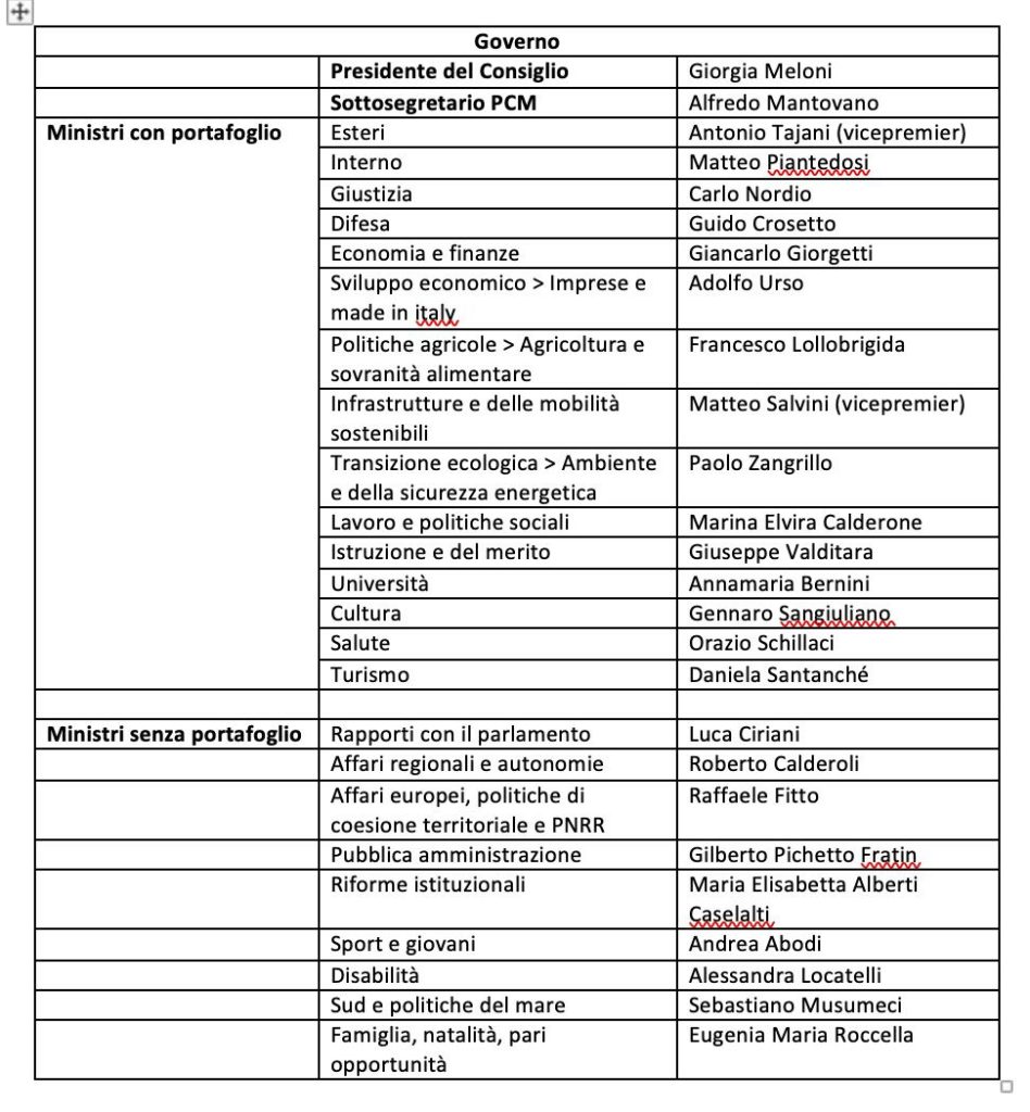 Governo: ufficiale la ‘squadra’ di Giorgio Meloni