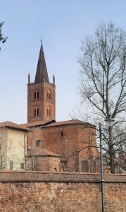 Arrivarono a Chieri tutte e due dalla bassa Valsesia, dal borgo medievale di Valduggia in provincia di Vercelli, uscite dall’Antica Fonderia “Mazzola Roberto fu Pasquale”. Erano le due campane da collocare nella cella campanaria del campanile di San Domenico. La domenica mattina del 17 giugno 1928, adornate di ghirlande di fiori e bandiere tricolori, vennero posizionate su di un palco ai piedi del campanile. Qui si riversò la città intera e l’attenzione fu rivolta, ed è anche ora mentre di essa si scrive, in particolare verso la più grande: la campana maggiore, perché a dieci anni dalla fine della Grande Guerra essa veniva dedicata ai Caduti. E i Padri Domenicani la vollero sul loro campanile. Il Vescovo di Pinerolo Mons. Angelo Bartolomasi, già vescovo militare e legatissimo a Chieri, le asperse con l’acqua benedetta, le unse con l’olio santo, le avvolse con l’incenso, le suonò per tre volte e dopo di lui le suonarono il padrino il Podestà Alfredo Bruni, e la madrina Giuditta Tinelli Chiaudano, madre di un Caduto. Il Vescovo cantò poi attorno ad esse i sette salmi (per i vivi, per i morti, per i sani, per gli infermi, per chi gioisce, per chi piange). Solo dopo questa funzione vennero issate in cima al campanile, sospese tra il cielo e la terra, tra Dio e il suo popolo. Sulla campana dei Caduti si legge in latino una dedica che possiamo tradurre così: La Famiglia domenicana e il popolo chierese nell’anno della salvezza 1928 per i Caduti della guerra, nel decimo anniversario della vittoria. Pontefice Pio XI e Re Vittorio Emanuele III e Priore Padre Tommaso Ferraris. Ave oh Croce unica speranza, Regina del Santissimo Rosario prega per noi, San Pietro Martire, Patrono della Provincia domenicana, San Giorgio Patrono di Chieri. Segue una scritta in cui è la campana che parla in prima persona e che venne tradotta così: