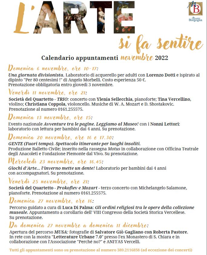 VERCELLI. MUSEO BORGOGNA. “L’ARTE SI FA SENTIRE”