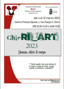 ChieRI_ART sarà un’esposizione dedicata al riciclo artistico e creativo utilizzati come linguaggi innovativi, dove la creatività e la potenza delle emozioni danno nuova vita a materiali di uso quotidiano. Il tema del 2023 sarà la “Donna, oltre il corpo”, tema declinabile in molteplici direzioni, di cui diamo spunto all’interno del bando stesso. Il corpo della donna strumento di creazione, ma usato, abusato, canonizzato, espressione di emozioni e alterato dalle stesse, ecc.La partecipazione è aperta ad artisti e creativi (quindi non necessariamente professionisti del settore), ed è aperta anche a gruppi/associazioni che utilizzano il riciclo artistico/creativo come strumento di riabilitazione e inclusione.Maggiori dettagli sono nel bando “Soprattutto nel caso di opere di gruppi e associazioni, chiediamo cortesemente di preavvisarci dell’intenzione di partecipare con ampio anticipo rispetto alla data di scadenza per l’invio del modulo di iscrizione. Un cortese cenno di interesse è gradito anche dagli altri candidati, per poter prevedere al meglio la gestione degli spazi espositivi”, scrivono le organizzatrici dell’associazione Mu.S.E. Chieri.