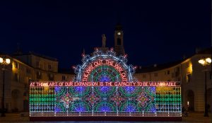 Assembly, l’acclamata scultura di luce di Marinella Senatore, arriva a Venaria Reale nella piazza dell’Annunziata, fulcro del monumentale centro storico alle porte di Torino e cuore della vita della comunità cittadina. Negli ambienti aulici della Reggia, inoltre, su iniziativa del direttore Guido Curto e in collaborazione con la galleria Mazzoleni, saranno presentate sei sculture di luce sempre della stessa artista. Nella pratica della Senatore il tema della luce è componente fondamentale: si tratta infatti di uno dei linguaggi privilegiati dall’artista, utilizzato quale mezzo di narrazione e creazione poetica, così come di resistenza e coesione.
