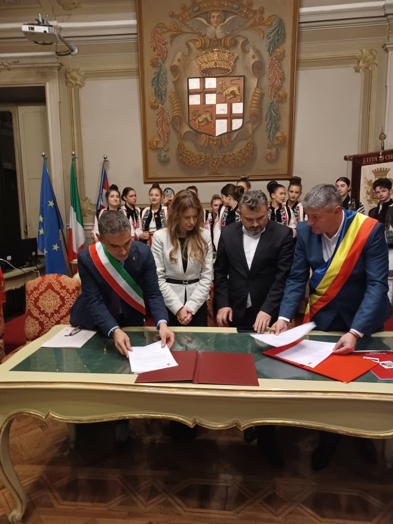 Chieri e Fălticeni hanno da tempo iniziato, con l’impulso dato dall’associazione chierese Ovidio un percorso che porterà alla firma di un gemellaggio all’inizio del 2023. Nel quadro di questo cammino, in occasione della tradizionale Fiera di San Martino, sabato 12 e domenica 13 novembre è arrivata a Chieri una delegazione ufficiale di 5 persone dalla città romena, tra cui anche il sindaco Gheorghe Cătălin Coman. Sono arrivate anche 12 giovani studenti dei licei di Falticeni facenti parte del Gruppo Folcloristico Valea Șomuzului Fălticeni che sono state protagonisti di uno splendido spettacolo di folclore, musica e danze popolari. La cerimonia ufficiale per la firma della dichiarazione di intenti da parte dei due sindaci si è svolta sabato pomeriggio in sala consiglio, presente un rappresentante del governo di Bucarest e il console generale rumeno a Torino.