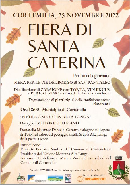 Sagre – Feste – Manifestazioni a : Chatillon, Vezzolano, Castelnuovo Don Bosco, Gassino Torinese, Valfenera (AT), Cuorgnè, Quincinetto, Montechiaro d’Asti.