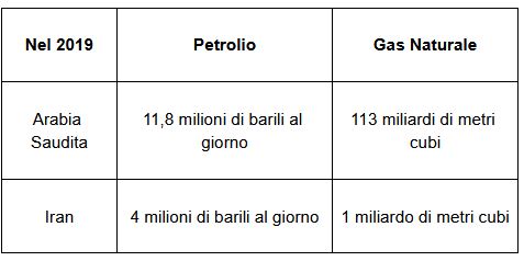Iran e Arabia Saudita sono infatti due dei più grandi produttori di petrolio e gas naturale rispettivamente.