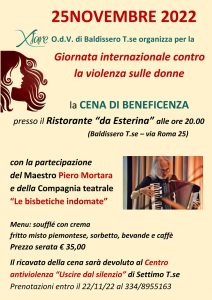 BALDISSERO TORINESE. CENA DI BENEFICENZA IN OCCASIONE DELLA GIORNATA INTERNAZIONALE CONTRO LA VIOLENZA SULLE DONNE