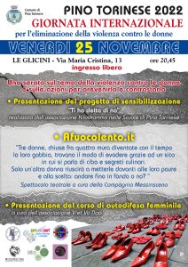 Il 25 novembre, Giornata internazionale per l’eliminazione della violenza contro le donne, il Comune di Pino Torinese ospiterà una serata di eventi e iniziative di sensibilizzazione sula violenza contro le donne. Un’occasione per ribadire in coro l’importanza di prevenire e denunciare azioni di violenza sempre più all’ordine del giorno.