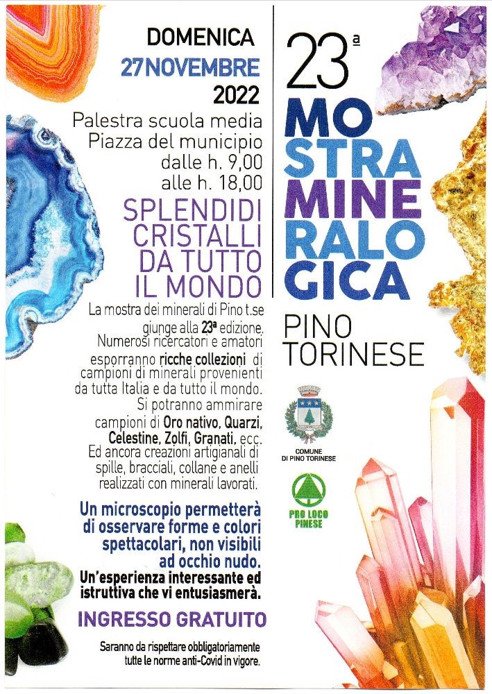 Pino Torinese. Domenica 27 Novembre la 23ma edizione della “Mostra Mineralogica”