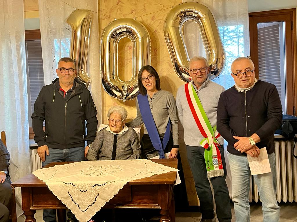 Nella foto: la neo centenaria, il consigliere provinciale Sara Rabellino, l’assessore del comunale Giuseppe Fiore ed altri consiglieri.