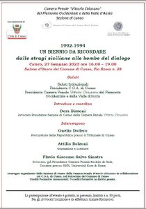 CUNEO. CONVEGNO “1992-1994 UN BIENNIO DA RICORDARE: DALLE STRAGI SICILIANE ALLE BOMBE DEL DIALOGO”