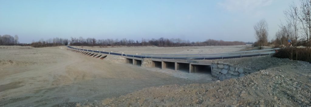 I lavori appena consegnati prevedono l’inserimento di ulteriori quattro nuovi fornici in calcestruzzo prefabbricati, uno lato Cavour e tre lato Vigone, in modo da rendere il guado simmetrico rispetto al proprio asse.