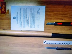 Nel pomeriggio del 24 gennaio 2023 una donna contattava la centrale operativa della Questura di Novara, chiedendo un pronto intervento degli agenti, così da poterla difendere dall’ex compagno 38enne, che si trovava vicino alla sua abitazione. La stessa donna nei mesi scorsi aveva denunciato due volte l’uomo per le sue molestie: centinaia di chiamate e messaggi minacciosi e appostamenti sotto la sua abitazione. Però il pomeriggio del 24 gennaio l’ex compagno era andato oltre, aveva inviato alla donna, che si trovava con i figli minorenni, addirittura una esplicita minaccia di morte, accompagnata da una foto, che lo ritraeva con un grande coltello a scatto. La donna, avendo compreso che, tra l’altro, il soggetto si trovava nei pressi della sua casa, si era chiusa all’interno per la paura e aveva chiesto i soccorsi. La Squadra Volante, intervenuta celermente, è riuscita subito a individuare l’uomo e a sottoporlo a una perquisizione assieme al suo veicolo. Così mentre gli veniva trovato indosso un taglierino e il coltello a scatto della fotografia, nel portabagagli dell’auto veniva trovata una mazza da baseball (nella foto). Accompagnato quindi in Questura e sentita la Procura della Repubblica, si procedeva all’arresto in flagranza dell’uomo, che peraltro ha già numerosi precedenti per reati contro la persona. Veniva quindi condotto al carcere di Novara, in attesa delle misure disposte dall’Autorità Giudiziaria.