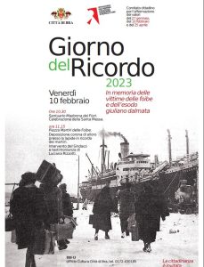 Venerdì 10 febbraio 2023 Bra commemora il “Giorno del ricordo”, in memoria delle vittime delle foibe e dell’esodo giuliano dalmata. Due gli appuntamenti di riflessione e raccoglimento in programma in città: alle 10.30 sarà celebrata la Santa Messa al Santuario della Madonna dei Fiori; a seguire, dalle 11.15, deposizione della corona d’alloro presso la lapide collocata nella piazza dedicata ai Martiri delle Foibe. Alla cerimonia interverranno il sindaco Gianni Fogliato e l’esule istriana Luciana Rizzotti. La cittadinanza è invitata a partecipare. Il Giorno del Ricordo a Bra è organizzato dall’Amministrazione Comunale in collaborazione con il Comitato cittadino per l’affermazione dei valori del 27 gennaio, del 10 febbraio e del 25 aprile e l’Istituto Storico della Resistenza di Cuneo. (em)