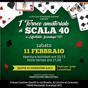 A MONTALDO SCARAMPI UN TORNEO DI SCALA 40 PER RICOMINCIARE