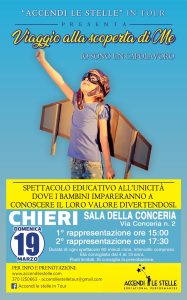 Teatro per bambini. “Viaggio alla scoperta di me” in marzo a Chieri, Alba, Chivasso, Torino, Collegno, Grugliasco