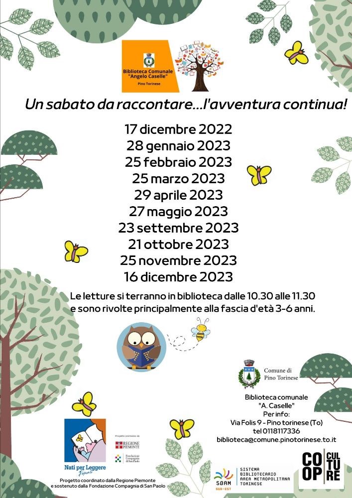 Continuano gli appuntamenti con “Un sabato da raccontare…l’avventura continua!” con le letture per bambini organizzate presso la Biblioteca Comunale di Pino Torinese.