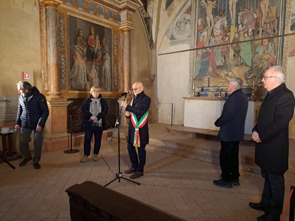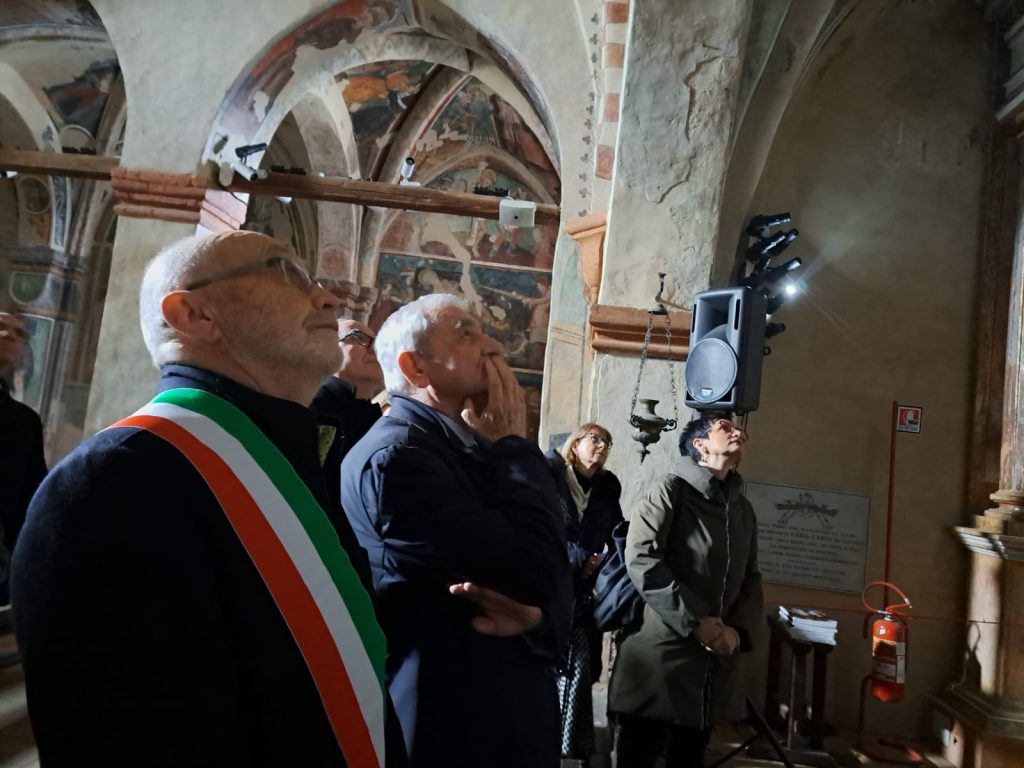 A Pecetto si è inaugurato alla presenza di numerosi sindaci del Chierese, del vescovo di Pinerolo monsignor Derio Olivero e del presidente della Fondazione CRT Giovanni Quaglia, l’ingresso dell’antica chiesa di San Sebastiano nel circuito “Chiese a Porte Aperte”, che gestisce con una app la prenotazione e l’apertura automatizzata della porta, consentendo visite a qualunque ora del giorno. All’interno della chiesa, ricca di affreschi del ‘400 e del ‘500, in parte opera dell’artista chierese Guglielmetto Fantini e della sua bottega, si può usufruire della guida multimediale che accompagna il visitatore illuminando e spiegano ogni dettaglio delle pitture. Nelle foto, momenti della inaugurazione.