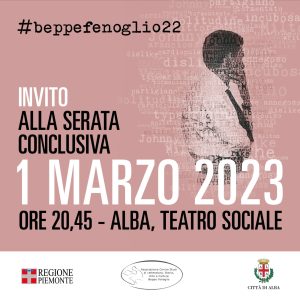 Il primo marzo 2023 segna la conclusione del centenario fenogliano Beppe Fenoglio 22, dodici intensi mesi di appuntamenti in cui la letteratura si è unita al teatro, alla musica, alla storia e alle arti per celebrare la memoria e l’opera dello scrittore albese.