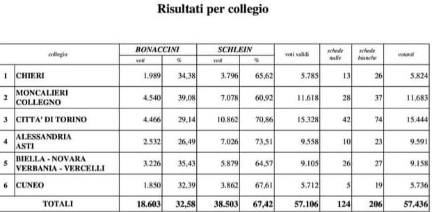 Alle Primarie del Pd, ha vinto Elly Schlein davanti al favorito Stefano Bonaccini. Quasi ovunque, nella Città Metropolitana, il voto è stato in linea con il dato nazionale. A Chieri, su 626 votanti, Schlein ha ottenuto 403 voti contro i 210 di Bonaccini (7 schede bianche e 2 nulle). A Moncalieri, Schlein 489 e Bonaccini 451. A Orbassano, Schlein 200 e Bonaccini 78. Contro tendenza il voto a Nichelino, con Bonaccini a 494 e Schlein a 266. Bonaccini ha vinto anche a Settimo Torinese.