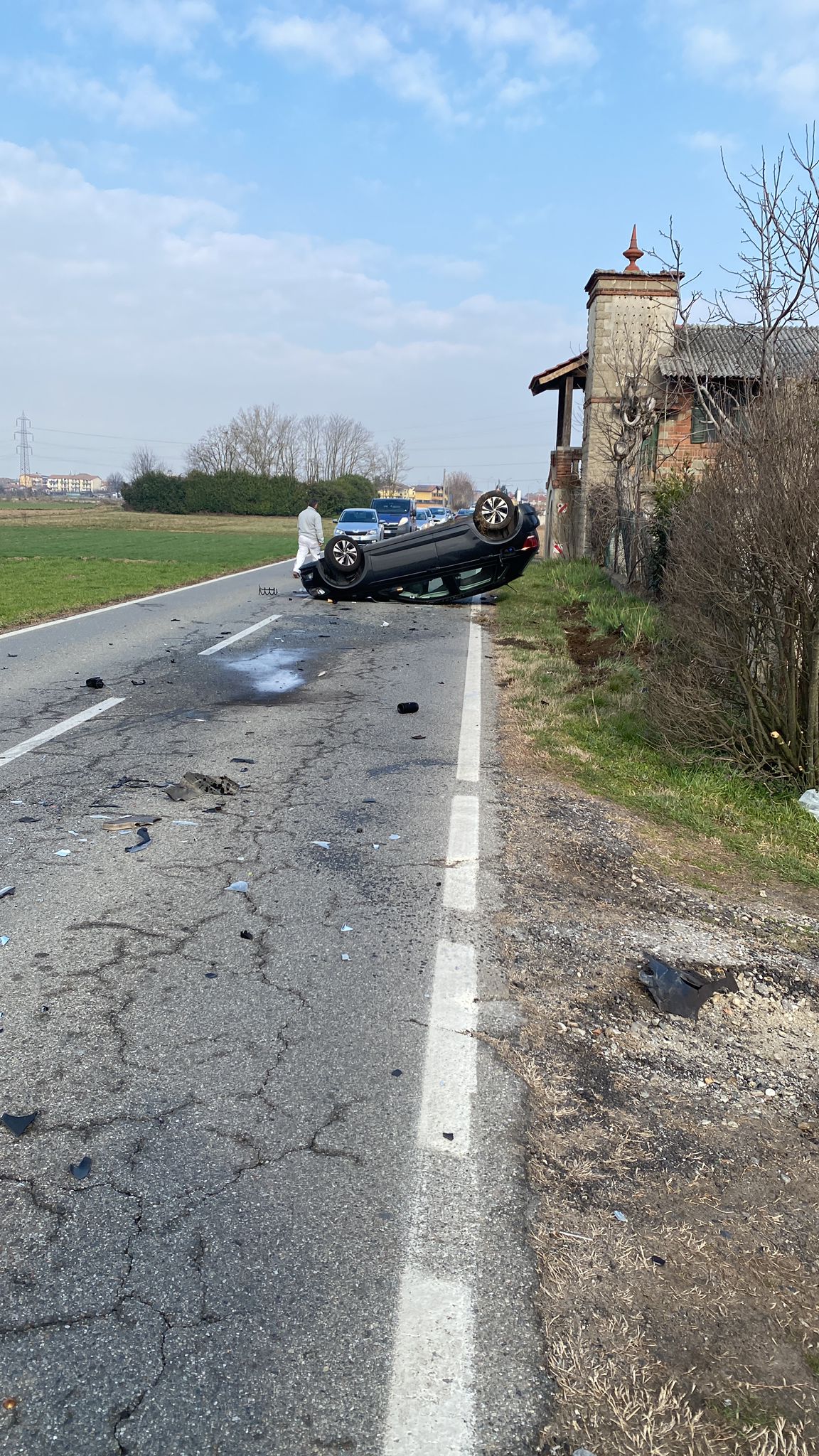 Cameri-Galliate. Scontro tra due auto, una si ribalta sulla carreggiata