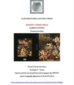 Il programma culturale del Circolo dei Lettori, nella sede di Palazzo Graneri della Roccia in via Bogino 9, si arricchisce martedì 14 marzo, alle 18, con la presentazione del volume di Alberto Cottino “Abraham Brueghel 1631-1697. Un Maestro della natura morta fra Anversa, Roma e Napoli”, a cura de “Il Quadrato della Cultura Torino”, EtGraphiae 2023, Attraverso uno studio approfondito, Alberto Cottino, docente di Storia dell’Arte alla torinese Accademia Albertina di Belle Arti, ha delineato il percorso, il linguaggio e la straordinaria misura espressiva di questo artista specializzato in nature morte, nato ad Anversa ma intensamente attivo in Italia da Roma a Napoli, e con alcune presenze anche a Messina e Malta.