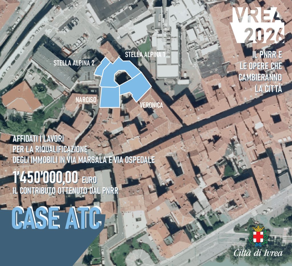 Sono stai affidati i lavori per la riqualificazione, l’efficientamento energetico e l’adeguamento statico degli edifici di edilizia sociale di via Marsala 18-20, via Marsala 22-24-26-28-30 e via Ospedale 9. L’intervento è interamente finanziato con i fondi PNRR – Next Generation EU per 1.450.000,00 euro, grazie al bando “Programma sicuro, verde e sociale – Riqualificazione dell’edilizia residenziale pubblica” vinto dal Comune di Ivrea. I condomini denominati Stella Alpina 1 e 2, Narciso e Veronica saranno principalmente interessati da lavori finalizzati all’efficientamento energetico degli immobili, quali la sostituzione dei serramenti esterni, l’isolamento termico delle murature perimetrali e il miglioramento degli impianti comuni, nonché da una generale riqualificazione delle parti condominiali comuni. I lavori inizieranno quando sarà terminato il cantiere dell’ospedale, per evitare altri disagi al quartiere.